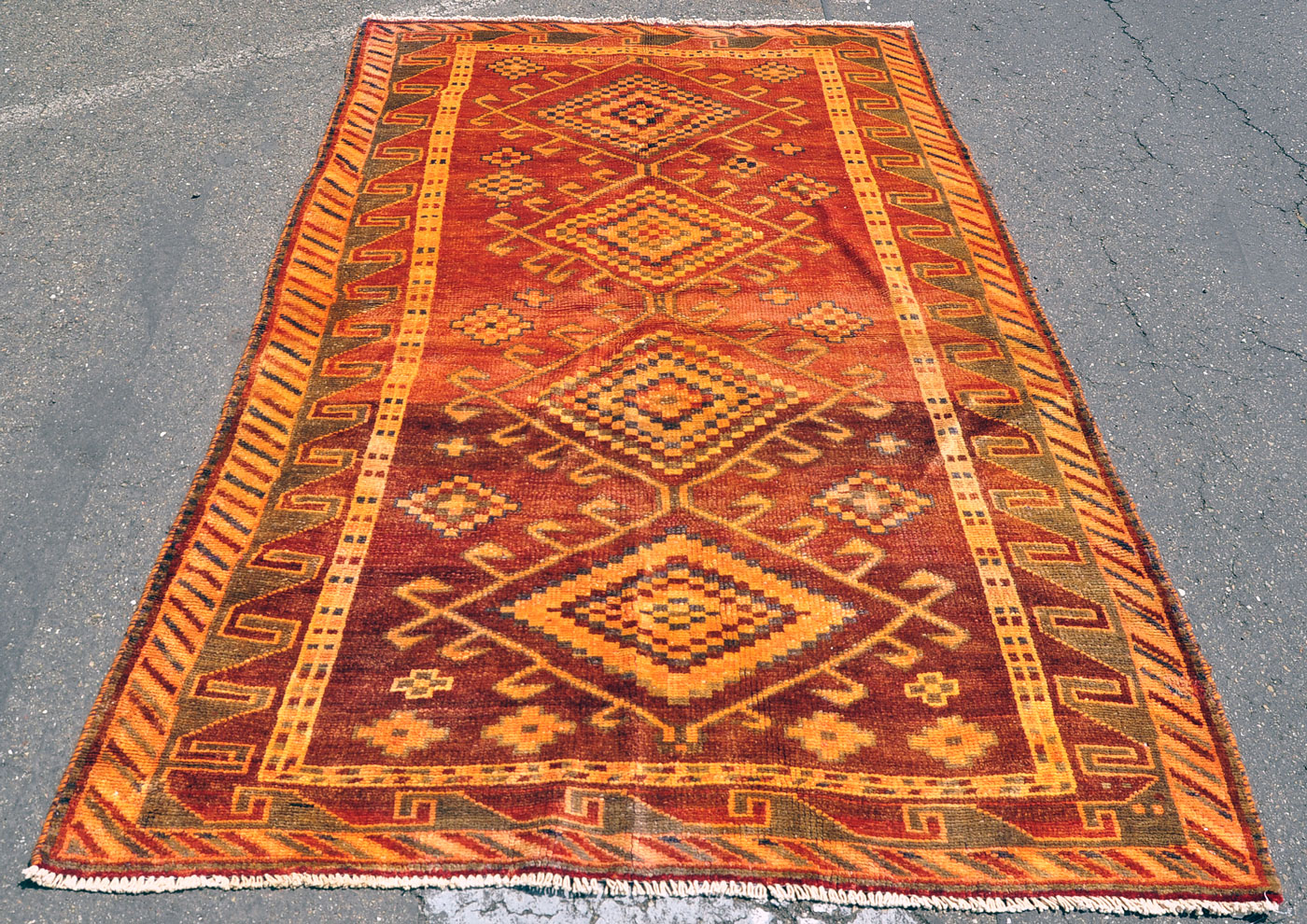 Traditional vintage handwoven geometric tribal carpet from Fars in Southwest Persia.